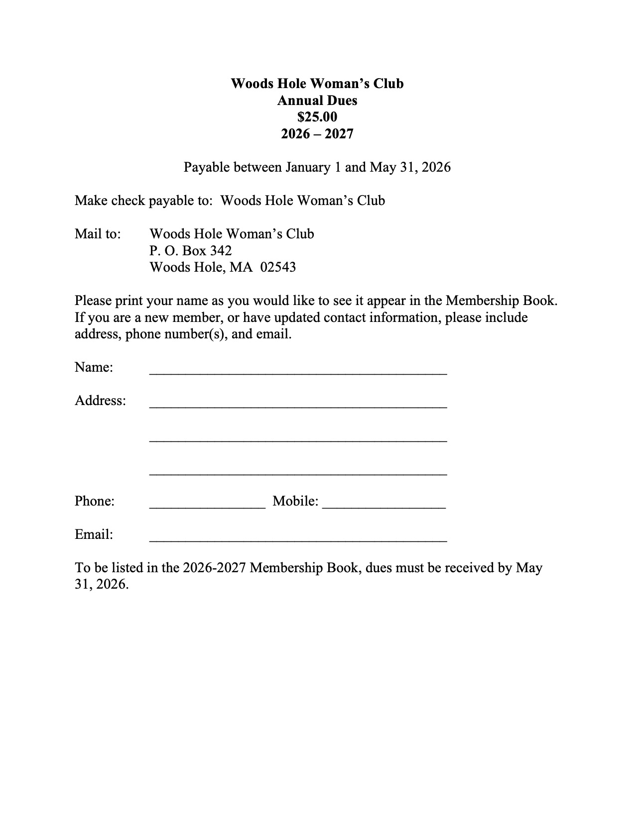 New members are welcomed at any time during the year. To join or renew your membership, download the Membership Form and mail it with a check for $25 to:
